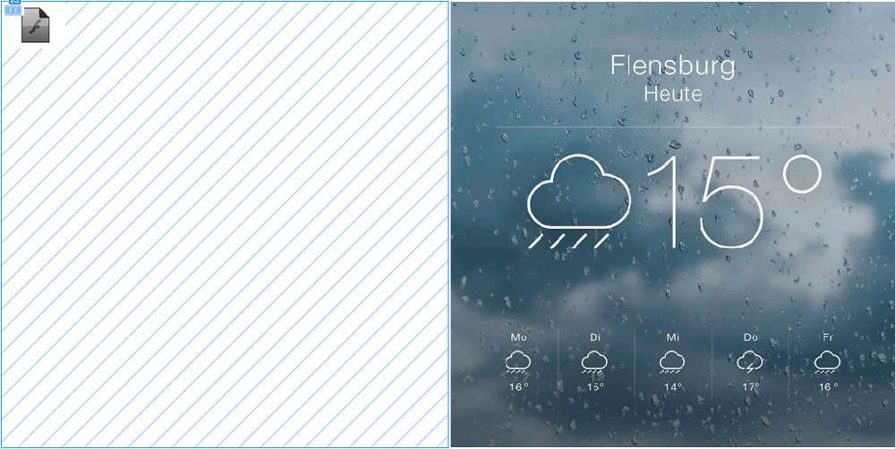 - Platziere die swf-Datei in InDesign. Du siehst jetzt nur einen gestreiften Quadrat, du kannst das Startbild nach deinem Geschmack auswählen.