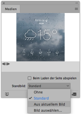 - Die Voransicht der Grafik lässt sich über Standbild ja/nein, Auswahl des Standbildes, definieren.