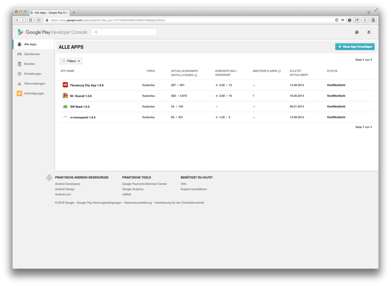 - In der Google Play Console einloggen: https://play.google.com/apps/publish/