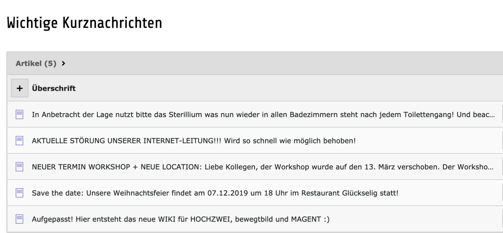 Das Intranet wird über das Backend gepflegt. Das Backend findest du hier: Wiki-Typo3