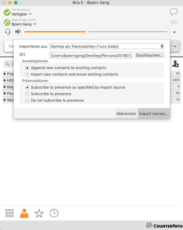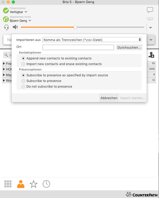 - Dann mit durchsuchen die neue Personalliste auswählen und importieren. Wichtig ist das der Radiobutton : "Append new Contacts to existing Contacts" gesetzt ist.