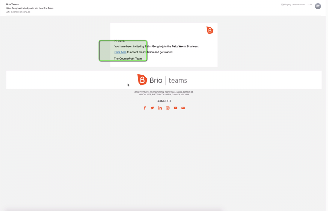 - Nach erhalt der Einladungsmail (Screenshot : Bria1 ), den bestätigungslink anklicken.