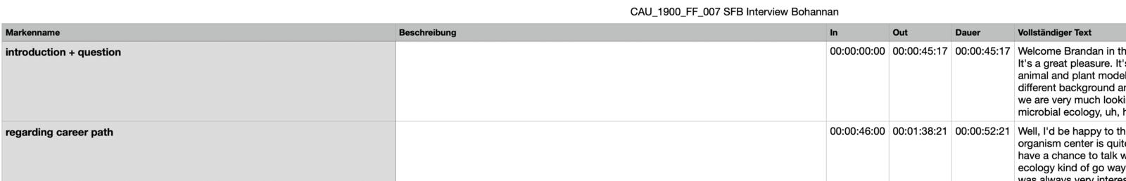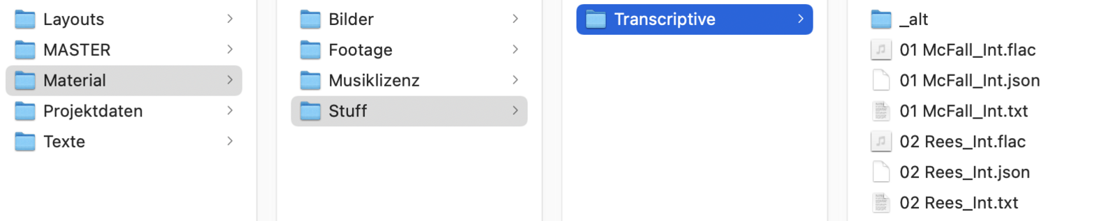 - Sichtung des Master-Files (Interviews) mithilfe von Transkript (Premiere)