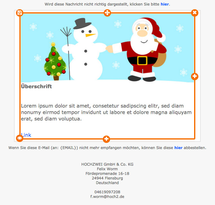 Ein Element kann später in Cleverreach im Newsletter verschoben, kopiert oder gelöscht werden.