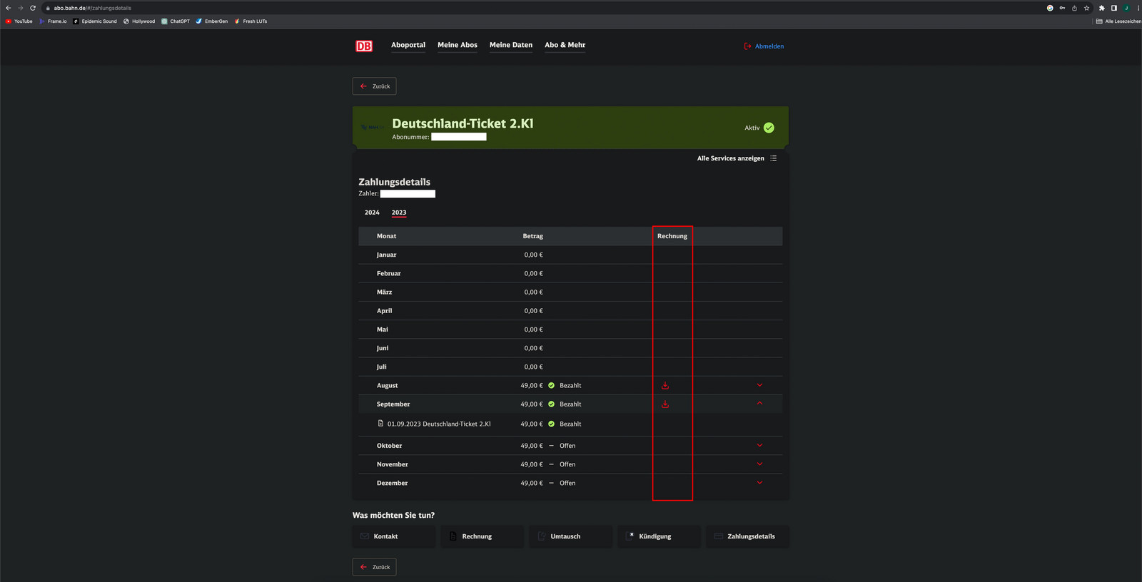 Nachstehend ist bebildert wie sich unter www.bahn.de Einzelrechnungen abrufen lassen.