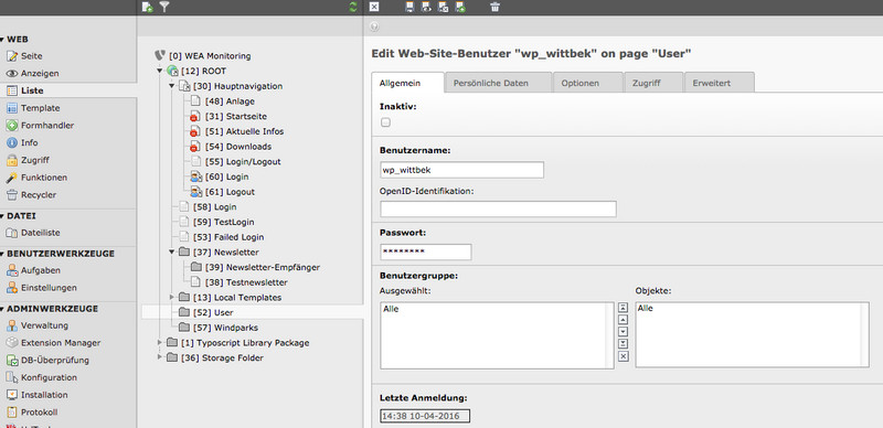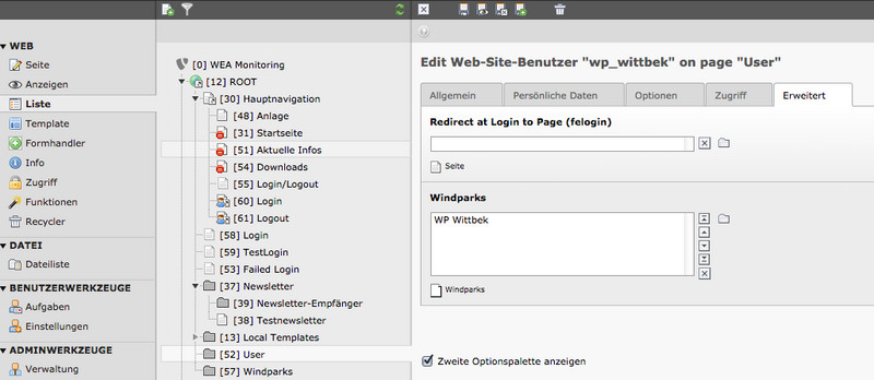 Es gibt ein Test-Account welche die verschiedenen Windparks zugeordnet werden kann.