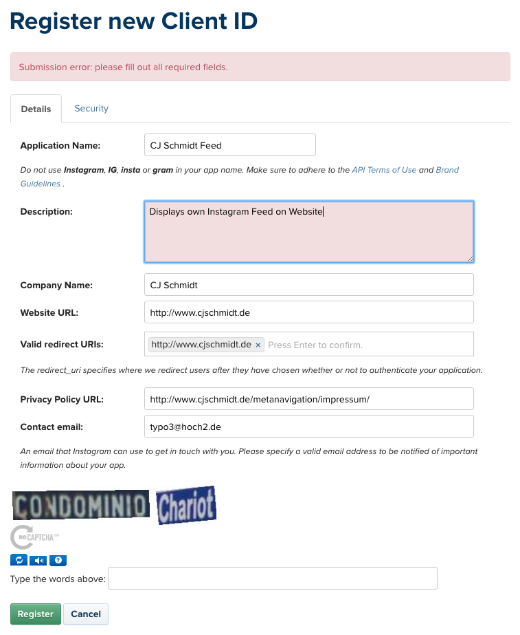 2) Auf https://www.instagram.com/developer/ gehen und dann oben in der Leiste auf "Manage Clients".