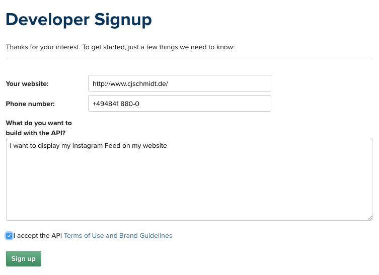 3) Wenn man zum ersten mal eine App für einen Account anlegen will, dann muss man sich einmal als Entwickler anmelden: