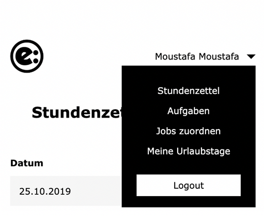 Nach erfolgreichem Login gelangt man auf die Startseite -> Stundenzettel eintragen.