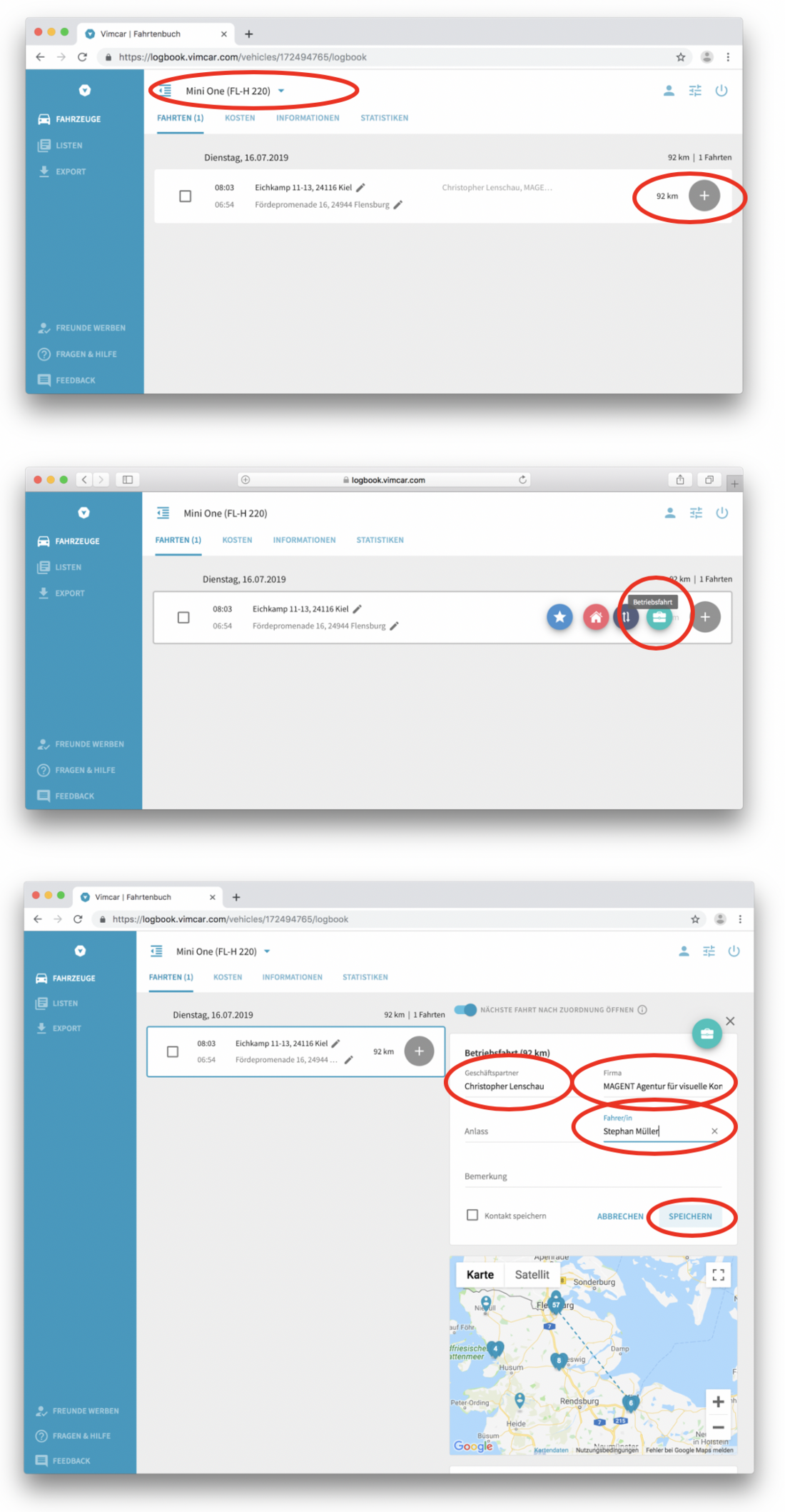 Der Fahrer ist außerdem verpflichtet ein Fahrtenbuch zu führen. Der MINI ist mit einem digitalen Fahrtenbuch von der Firma VIMCAR ausgestattet. Eure Fahrten werden hiermit automatisch erfasst. Nach jeder Fahrt müsst ihr euch dann nur noch bei VIMCAR anmelden und euch der Fahrt zuweisen.
