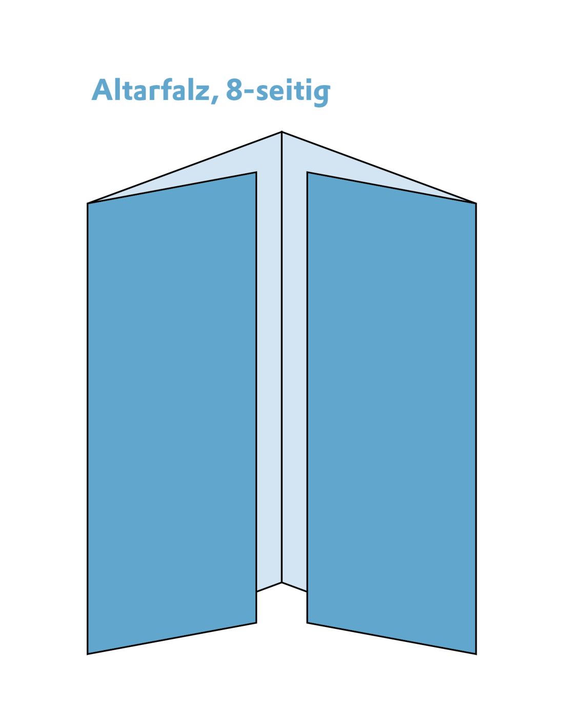 Parallelfalz bedeutet, der Bogen wird mehrfach gefalzt, dabei liegen alle Brüche parallel zu einander. Dazu gehören: