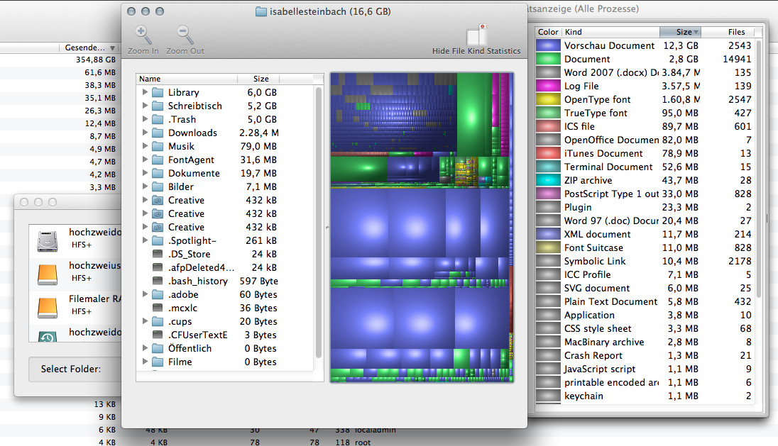 - Disk Inventory X starten, mit Select Folder... den Ordner des betroffenen Users wählen