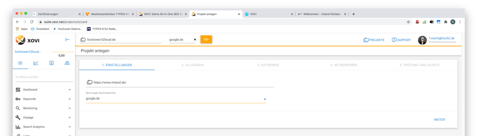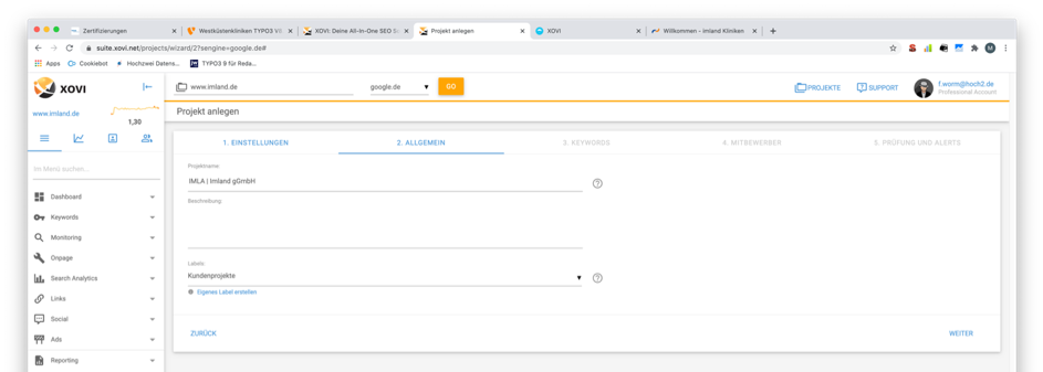 Im Menüband auf Projekte klicken und in der aufgeklappten Liste auf „+ Projekt anlegen“