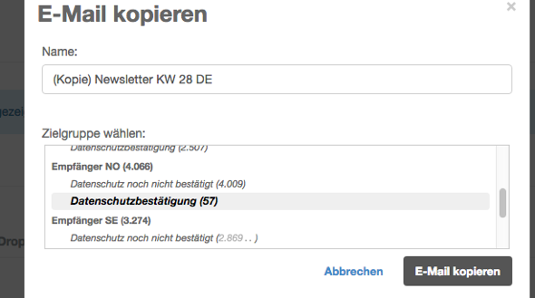 1. Wir kopieren keine Newsletter – wir erstellen neue. Das Kopieren hat in der Vergangenheit zu Problemen geführt.