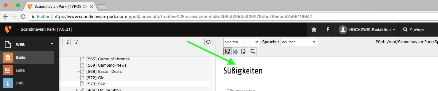 Unter dem Punkt „Specials“ liegen im Backend unsere Newsbeiträge. In diesem Fall kopieren wir einfach die letzte und verändern diese. Die News bestehen aus 4 Elementen: