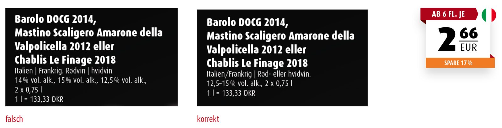 Einige Produkte werden in beiden Handzetteln beworben. Es kann im Vorweg Zeit gespart werden. Beispiel Casillero: Produkt ist für beide Sprachen ausgewählt. Das letzte Mal, dass Casillero in der Werbung war, ist bsp. Dezember 2020. Dieses notieren und – wenn der deutsche Prospekt in Arbeit ist – im Dezember DE schauen, ob der Casillero auch dort zu finden ist.