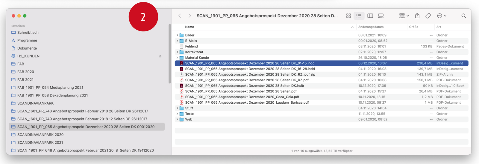 Damit die InDesign-Datei nicht zu groß wird und auch mehrere Personen an den Prospekten arbeiten können, ist der DK-Prospekt in zwei oder drei Teile geteilt und wird mittels Buchfunktion zusammengeführt.