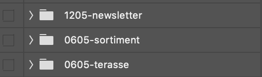 Für die Übersicht ist es auch hilfreich jedes einzelne Posting/ fertige Grafik in der PSB zu gruppieren und zu benennen z.B. „1205-newsletter“.