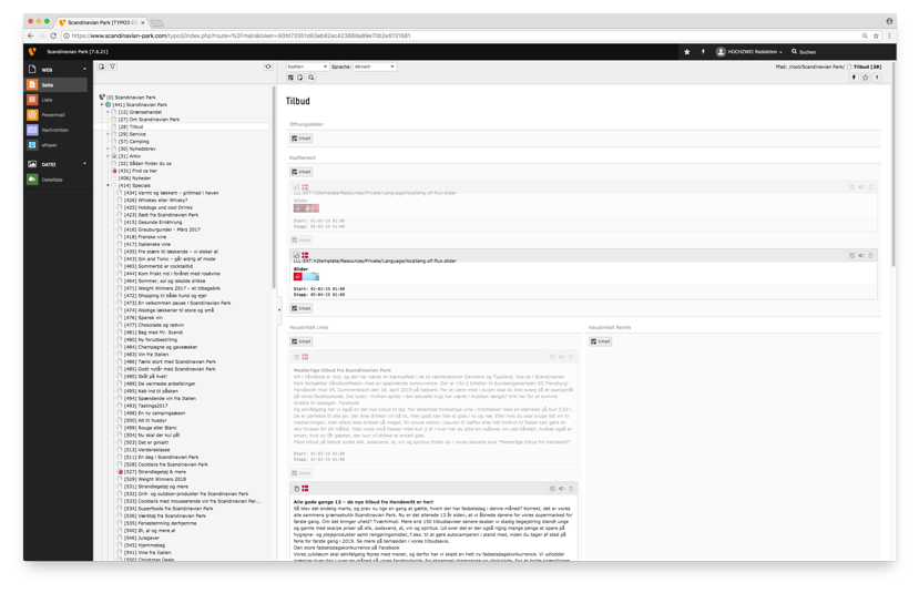 Wichtig ist es, SEO-relevante Begriffe wie Supermarkt, Bier, Wein, Spirituosen, Handewitt, Scandinavian Park usw. einzubauen. Auf dänisch ist es ähnlich. Mögliche Begriffe: Slik, sodavand, øl, vin, spiritus, grænsebutik, grænsehandel. Die Texte gehen an die Projektleitung, die sie ins Lektorat schickt. Redaktionell zu pflegen sind hier die Headgrafiken (DE, DK und NO/SE) sowie die Texte (DE, DK, SE). Unsere norwegischen Freunde bekommen keine Übersetzung.